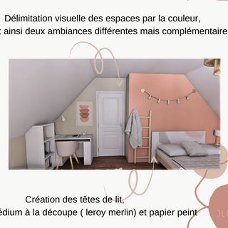 2 jeunes adolescentes ont fait appel à moi car elles souhaitaient que leur chambre double soit redécorée, plus dans l'air du temps, et créer des espaces pour chacune